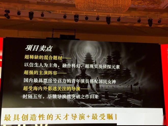 1905电影网讯日前,在第二十五届全国优秀影片推介会上,推荐人介绍电影已开机。影片由导演,、主演。作为毕赣时隔五年的回归之作,影片以仿生人为主角,融合科幻、超现实及侦探元素,是目前市场超稀缺的混合题材。