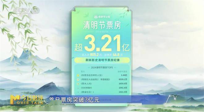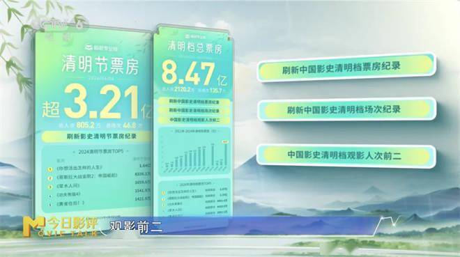 1905电影网专稿2024年清明档电影首日票房突破3亿,总票房突破8.47亿元,刷新中国影史清明档票房纪录、场次纪录,观影人次位居中国影史清明档前二。