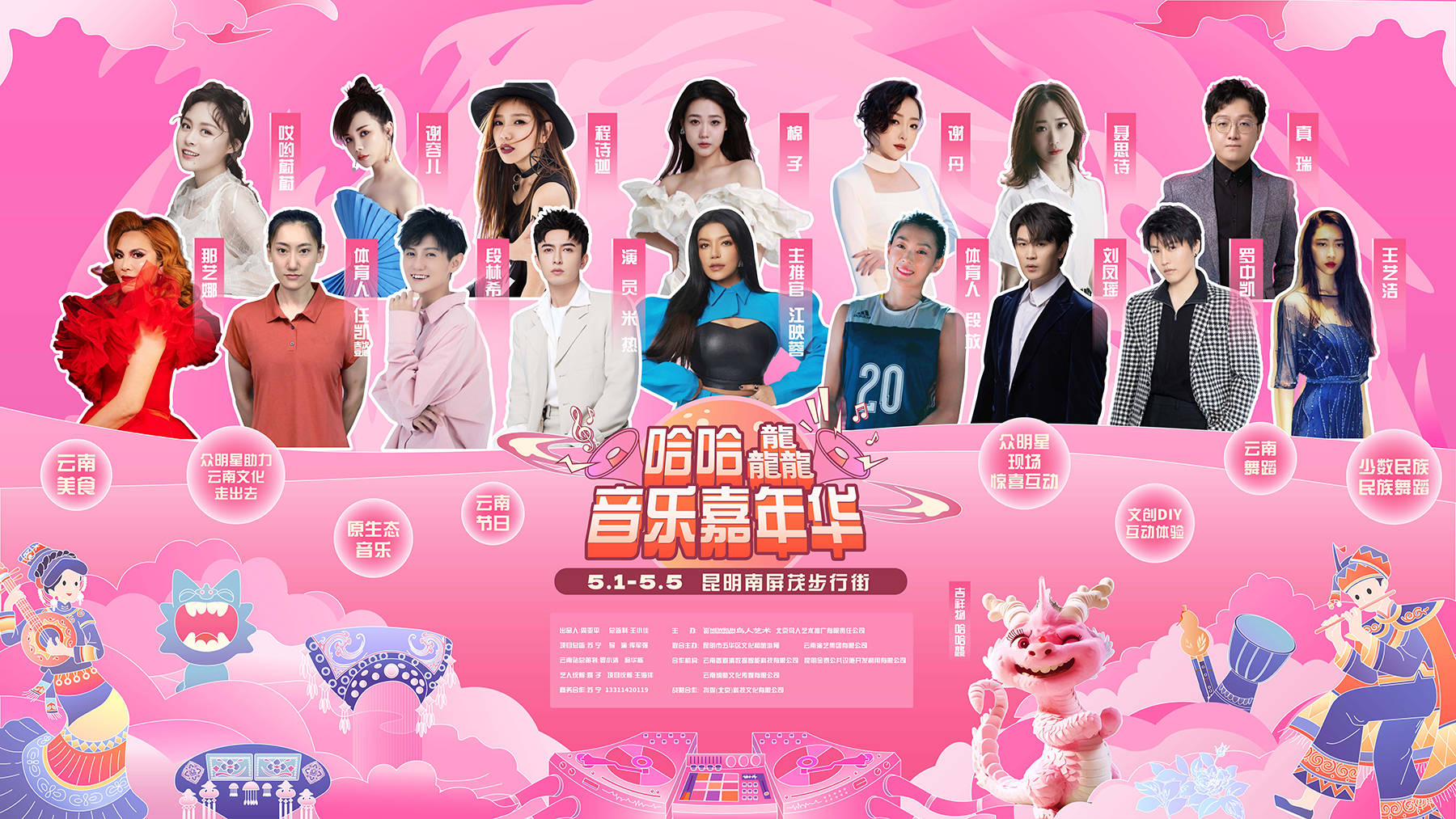 哈哈龘音乐嘉年华·第一站昆明将于5月1日至5日在昆明南屏茂步行街开启,目前以主推官江映蓉领衔的全阵容已经官宣。
