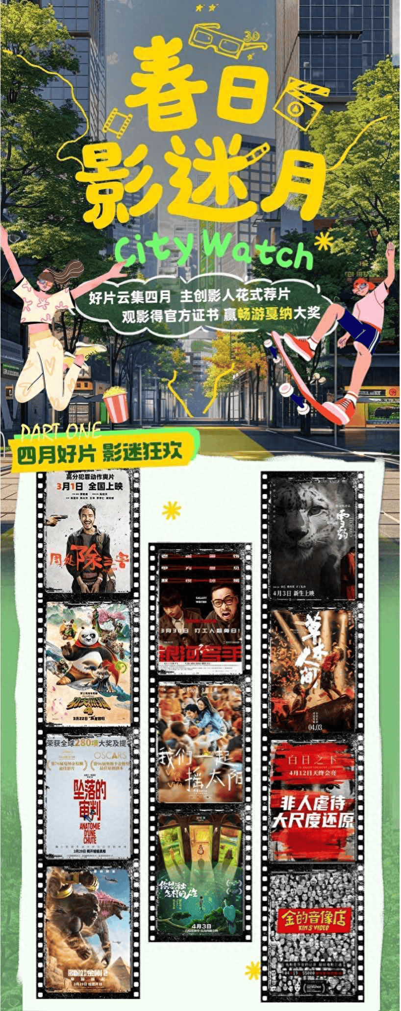 继高分犯罪动作爽片《周处除三害》成为3月票房黑马后,又一批题材新颖、类型多元、口碑出众的影片即将上映,为电影行业注入全新的内容势能。3月22日,淘票票携手多部好片发起“春日影迷月City Watch”活动,以期通过丰富的内容供给和创新的运营玩法回馈影迷热爱、激发市场活力。