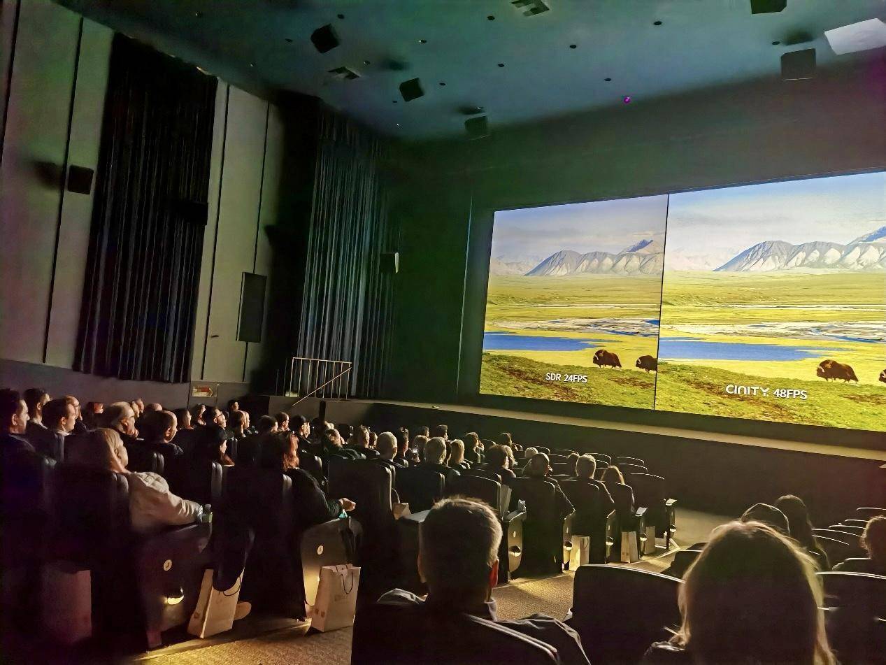此外,会上还演示了CINITY品牌宣传片、3段GSCA提供的自然风光对比片(2D 4K SDR 24帧与CINITY 2D 4K HDR 48帧对比)和4K 3D 120帧CINITY版本的《双子杀手》影片片段,每段演示片结束时,现场会员都给予了热烈掌声。