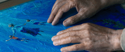 奶奶打开包装,用苍老的双手抚摸着画,没说一句话,却已感知了心意。