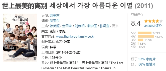 比如,徐帆主演的《关于我妈的一切》,翻拍自韩国电影《世上最美的离别》。