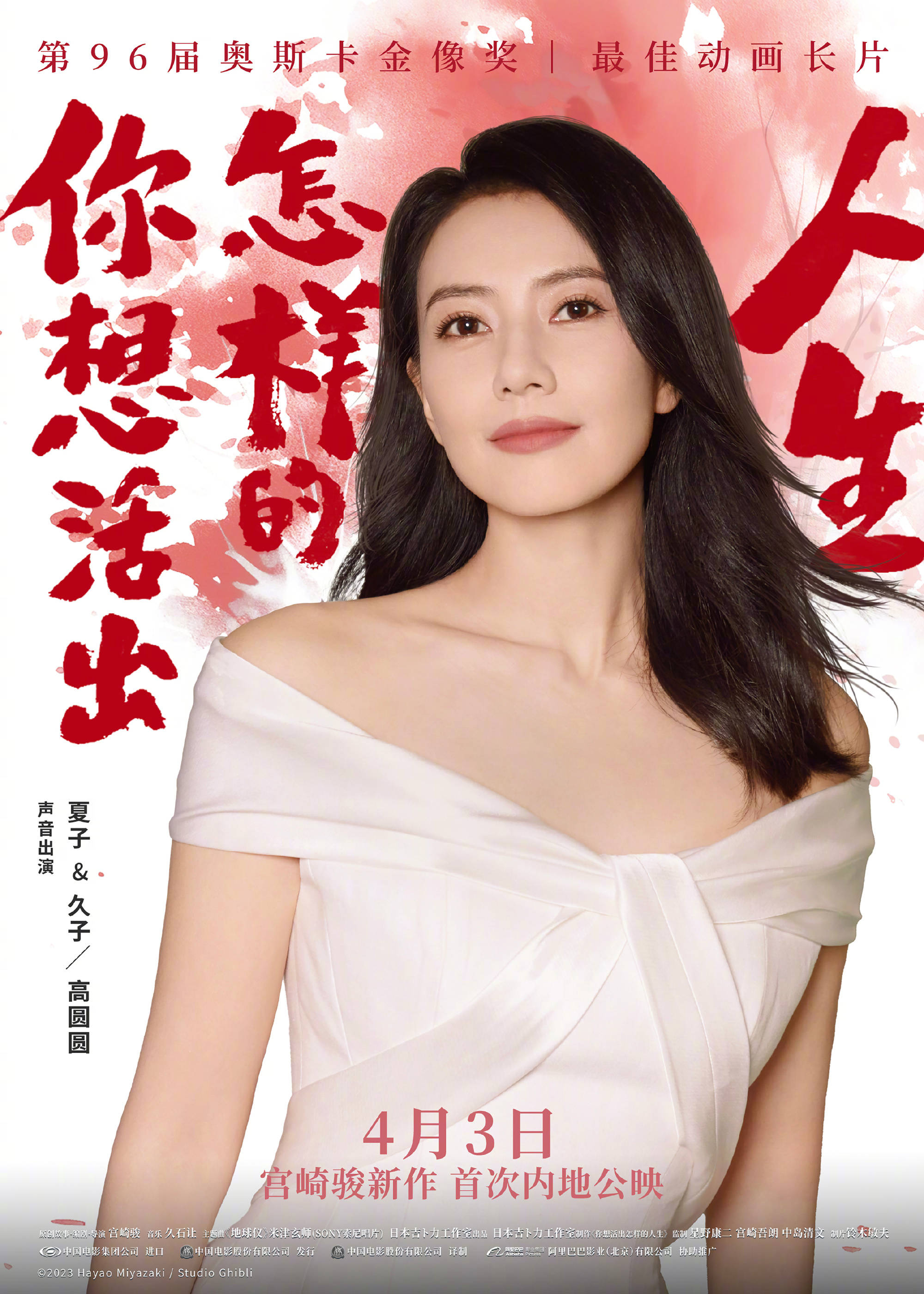 作为83岁宫崎骏的“人生电影、告别之作”,电影在全球范围内的配音阵容堪称豪华,日文原版由菅田将晖、木村拓哉等演员配音,北美则由罗伯特·帕丁森、克里斯蒂安·贝尔等演员配音,今日曝光的中配阵容,同样给足了观众惊喜。此外,曾担任《长安三万里》配音指导、参与《妖猫传》、《白蛇:缘起》配音的杨天翔,也参与担任这部电影的配音指导。