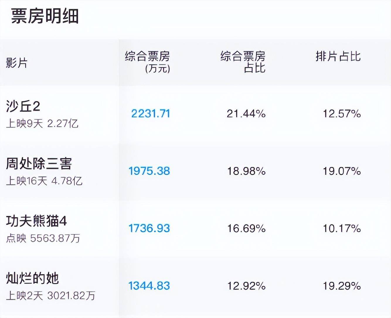 上座率和排片完全不成正比,单日票房直接被《周处除三害》给碾压了,单日票房排名在第四名的位置。