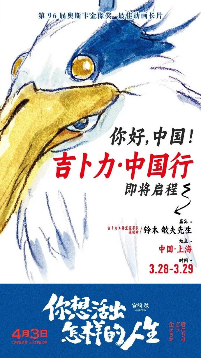 原标题:吉卜力官宣3.28-3.29开启中国行!铃木敏夫将出席宫崎骏新片上海首映礼