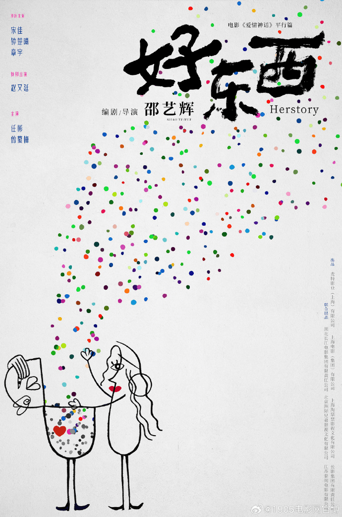 由邵艺辉执导,宋佳、钟楚曦、章宇主演,赵又廷特别出演的《爱情神话》平行篇《好东西》正式开机。海报中简约的线条勾勒出一对男女形象,色彩缤纷的斑点四散在空中,就像真正的爱情只有拂去表面浮尘后才能看清。影片延续前作独特的女性视角,讲述了王铁梅(宋佳 饰)和小叶(钟楚曦 饰)面对爱情与生活的闯入者,终于认清现实,彼此温暖和成长的故事。