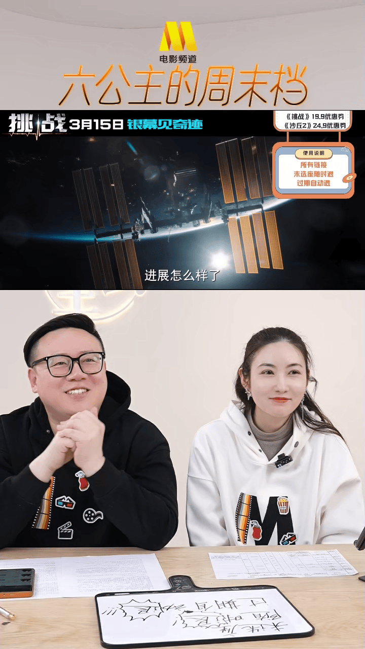 3月15日晚的《六公主的周末档》直播中,电影频道主持人巧筠与影评人大陆搭档,以预告片解析、影片热搜话题解读、网友话题互动的形式,结合经典作品与电影文化,拉片解读新片电影预告,带来从内容出发的深度院线新片推介,以专业化内容提升观众的观影兴趣与购票意愿。