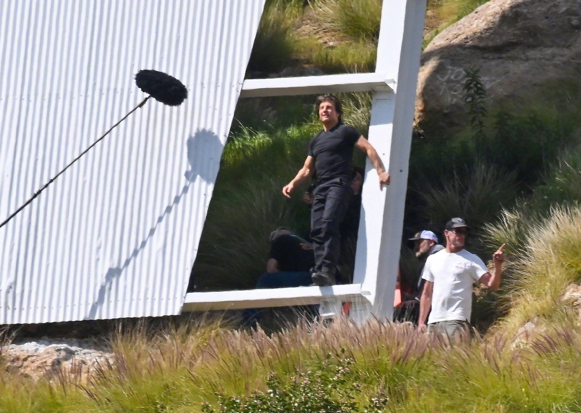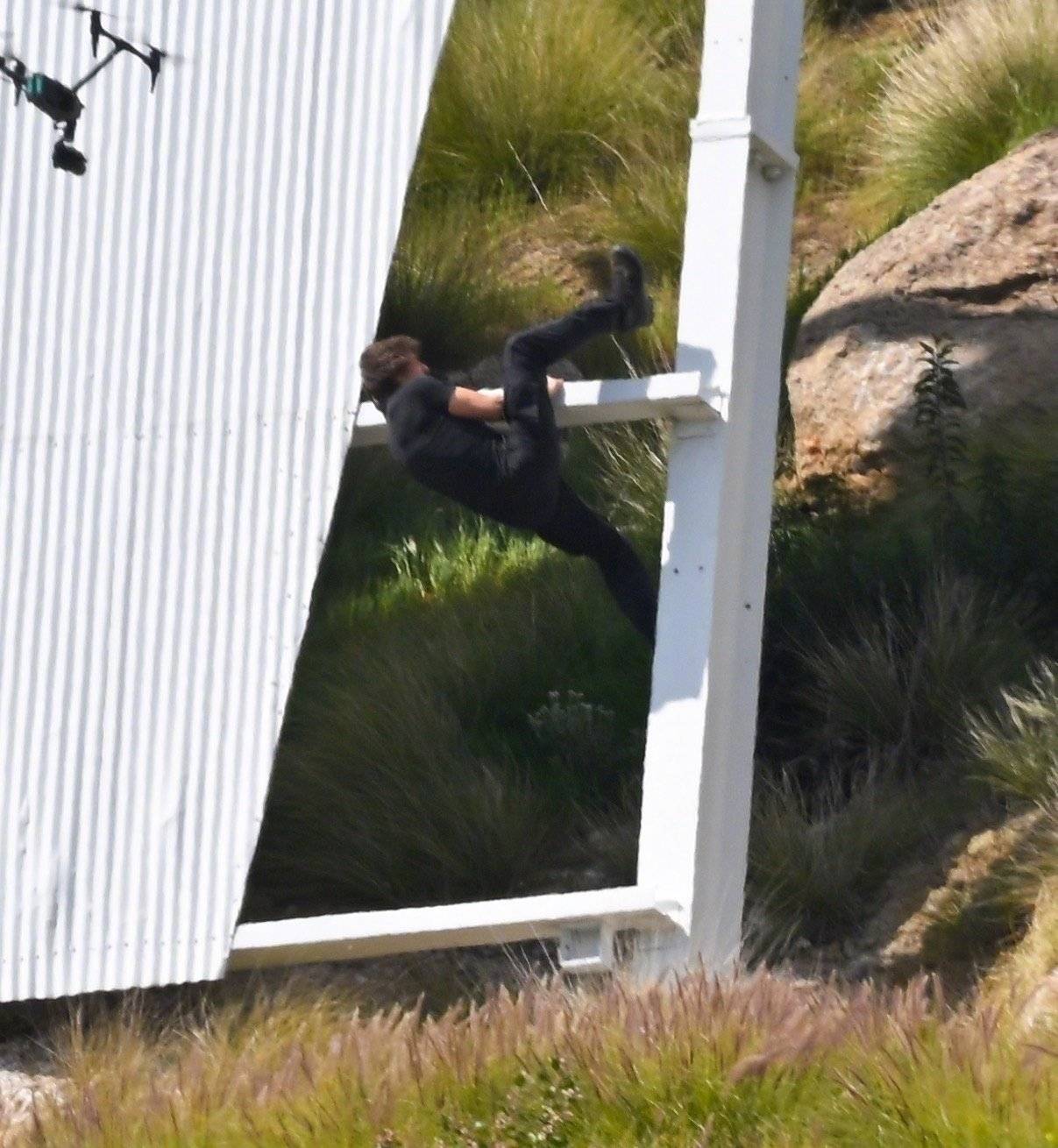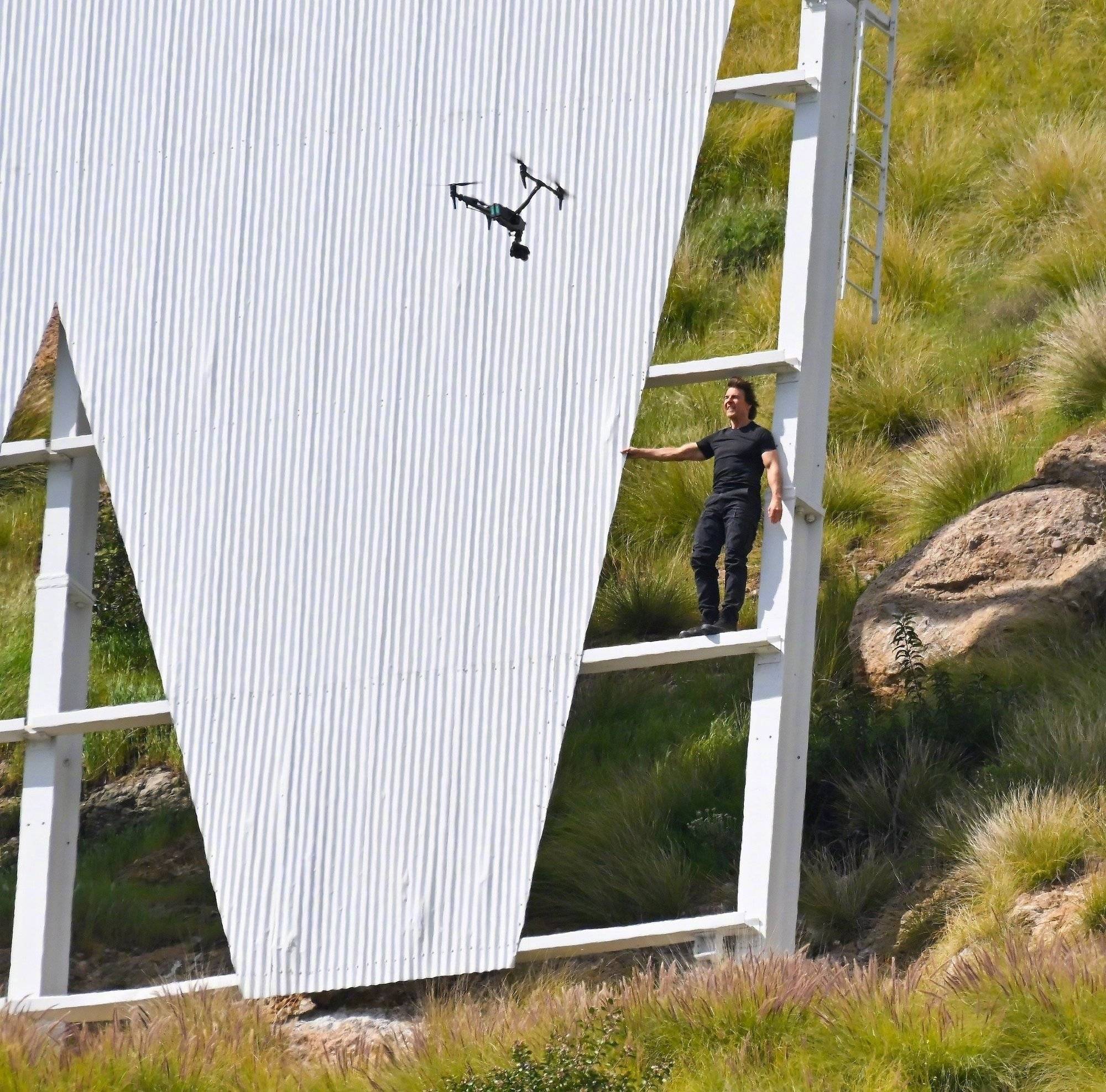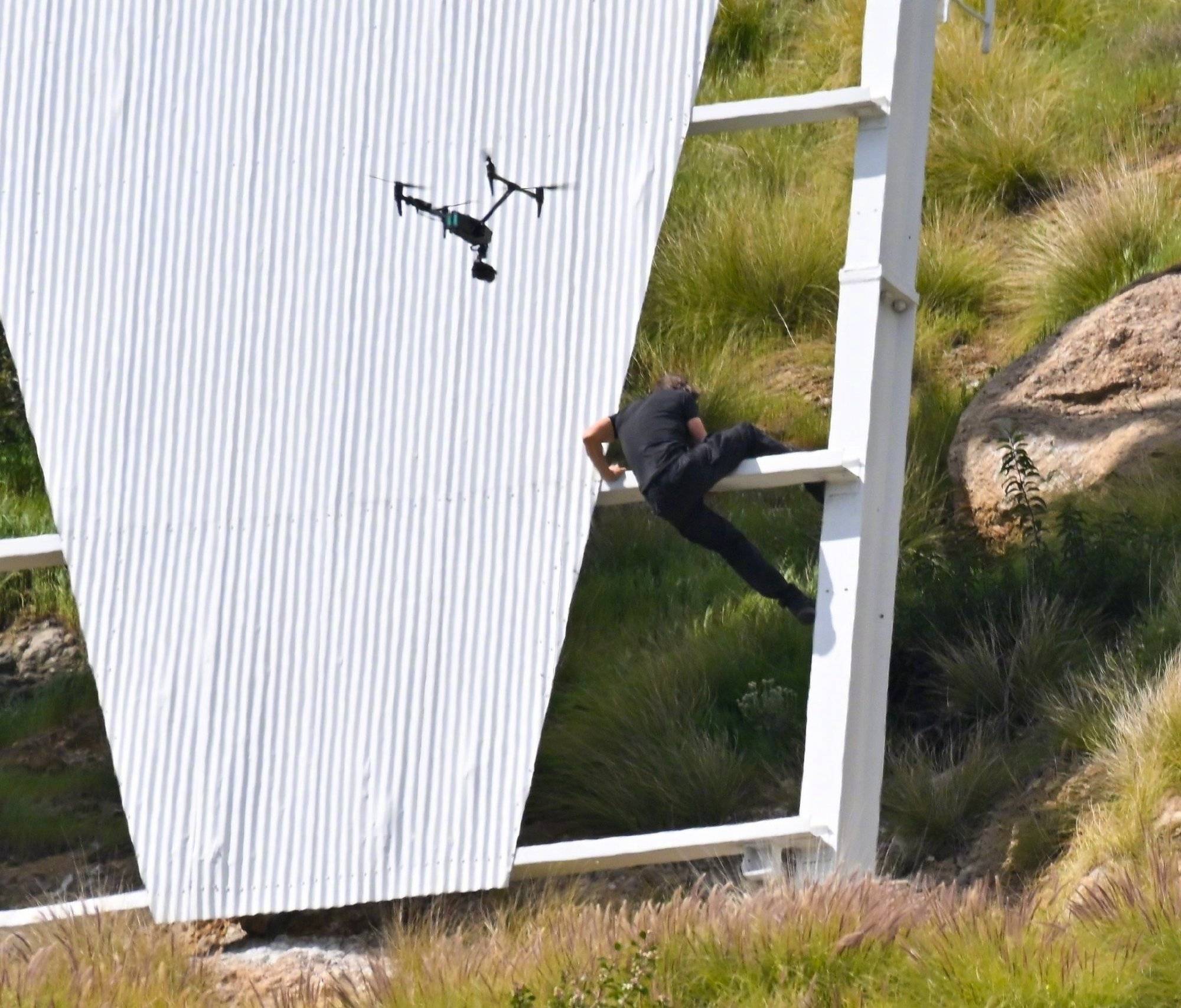 搜狐娱乐讯 《碟中谍8:致命清算(下)》洛杉矶片场照曝光,61岁“阿汤哥”汤姆·克鲁斯在好莱坞标志上展示特技,还小露了一下腹肌。