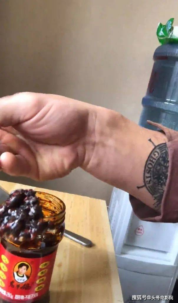 猛男吃饭也是猛,他吃起老干妈简直下猛量,用勺子直接往牛排和西兰花上面浇,看来是真爱。