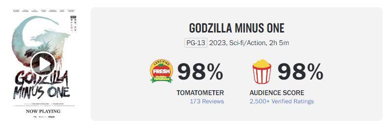 而《哥斯拉负一》拥有与好莱坞不同的风格,带来了许多新鲜感,影片剧情上也颇受肯定,在国外各种网站上评分非常高,几乎跟《奥本海默》一起,是2023年在欧美评价最高的电影之一,这对于特效的好感度也很有加成。