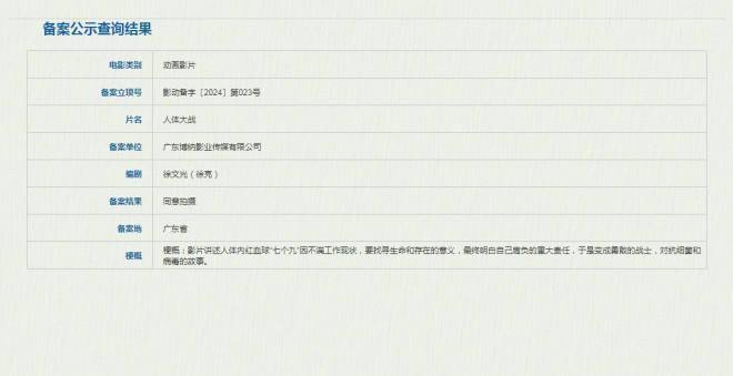 1905电影网讯3月13日,据国家电影局关于2024年1月下全国电影剧本(梗概)备案、立项公示的通知,徐文光(徐克)编剧电影《人体大战》备案立项。
