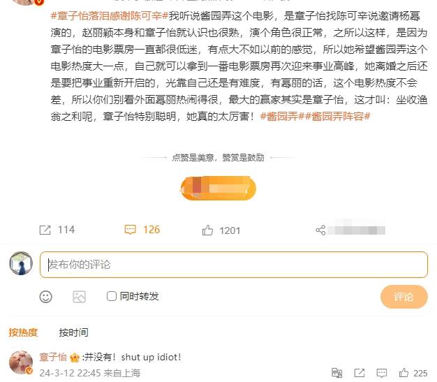 随后,章子怡亲自现身评论区打脸营销号,对文章内容的真实性记忆否认,并让营销号闭嘴。