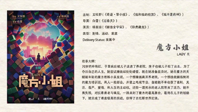 搜狐娱乐讯 2024香港国际影视展上,寰亚电影曝光由文牧野监制,《过春天》导演白雪执导,奥斯卡影后杨紫琼主演的新片《魔方小姐》(此前备案名《魔方奶奶》)。