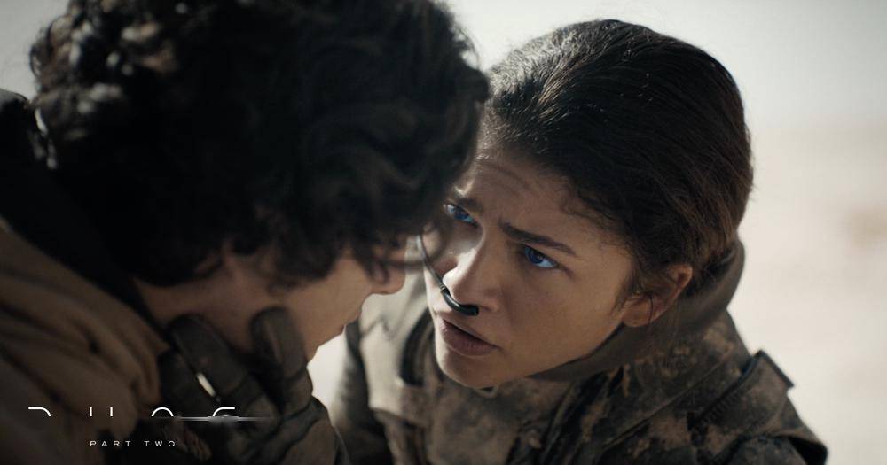 从体量上看,两部《沙丘》都达到了一线大片级别。然而,成本高达1.9亿美金的《沙丘2》,却被维伦纽瓦拍得很像文艺片,不仅有大量的特写镜头、慢镜头,还有很多唯美空镜,时而呈现出肃穆的仪式感,时而又配合着爱情萌发的浪漫。