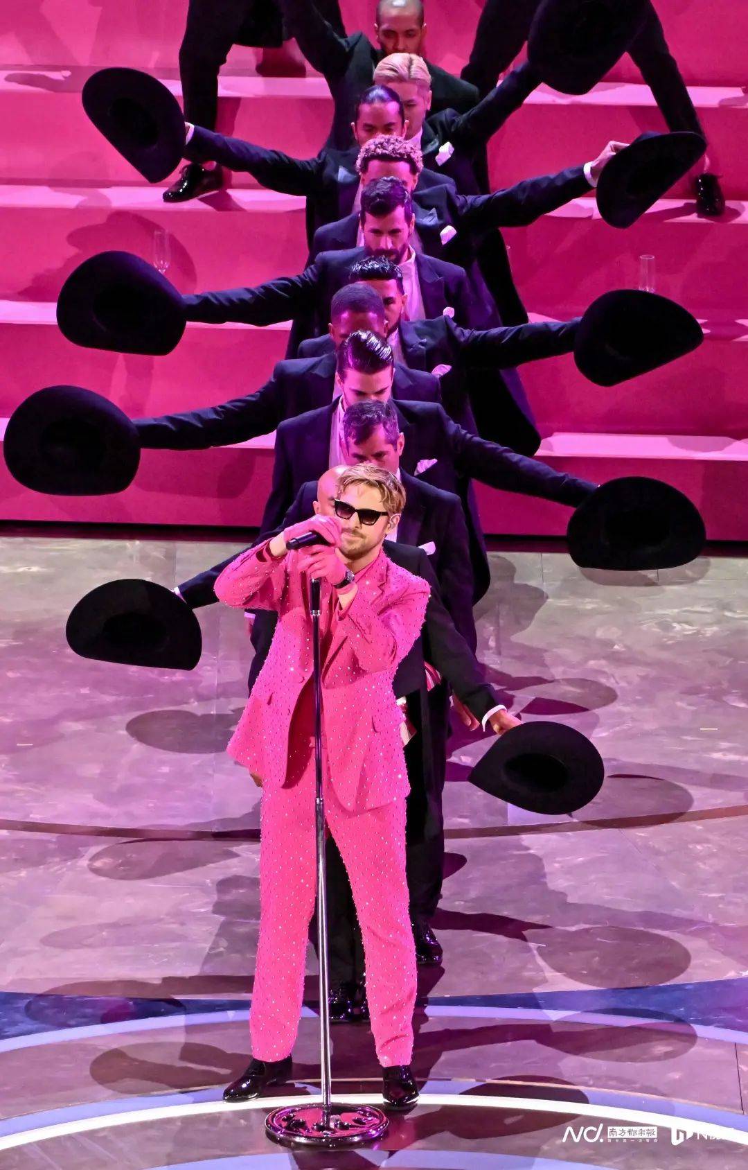 “高司令”身穿粉红色西装,与65个男人一同表演《芭比》原声《I’m Just Ken》,为本次颁奖礼贡献了“名场面”。