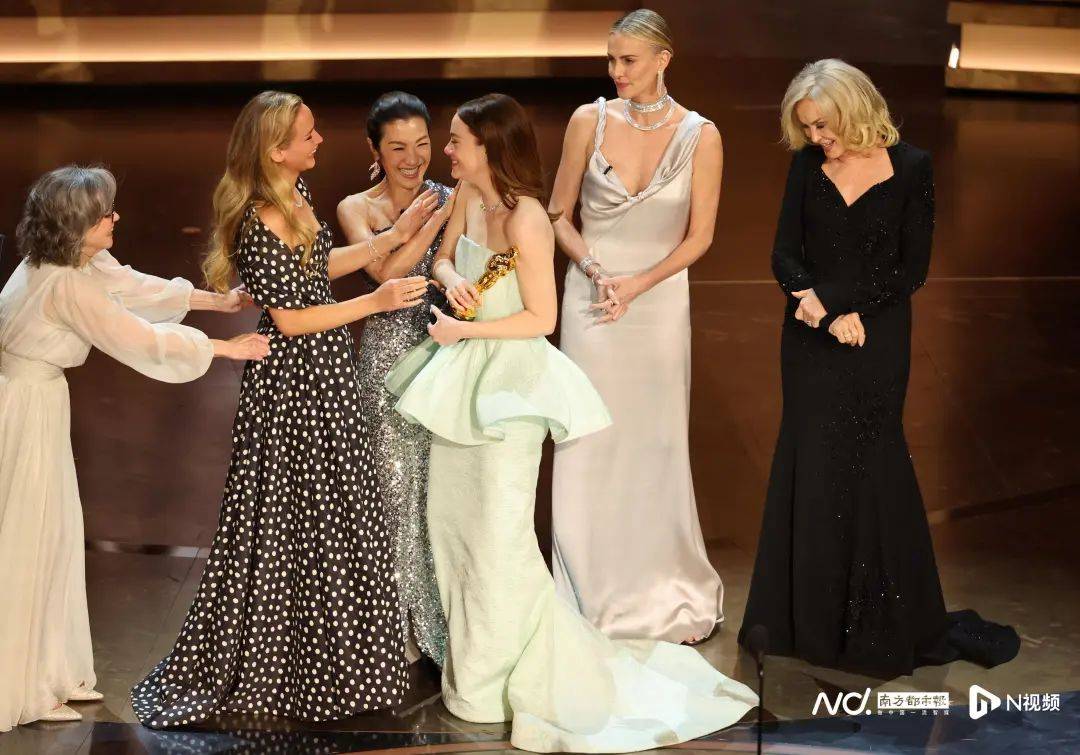 “石头姐”艾玛·斯通曾经凭借《爱乐之城》获得奥斯卡影后,《可怜的东西》助她二次封后,本次为她颁奖的嘉宾阵容豪华,由五位往届最佳女主角得主组成,包含杨紫琼、詹妮弗·劳伦斯,莎莉·菲尔德,查理兹·塞隆,杰西卡·兰格,宣读获奖人选的则是上届奥斯卡影后杨紫琼。二封影后的艾玛·斯通上台发言表示裙子崩了,“我很确定是唱《I’m just Ken》时坏的”。她在台上表白自己的女儿,“我的女儿三天后就满三岁了,她让我们的生活变得五彩斑斓。我爱你胜过爱整个天空,我的宝贝”。