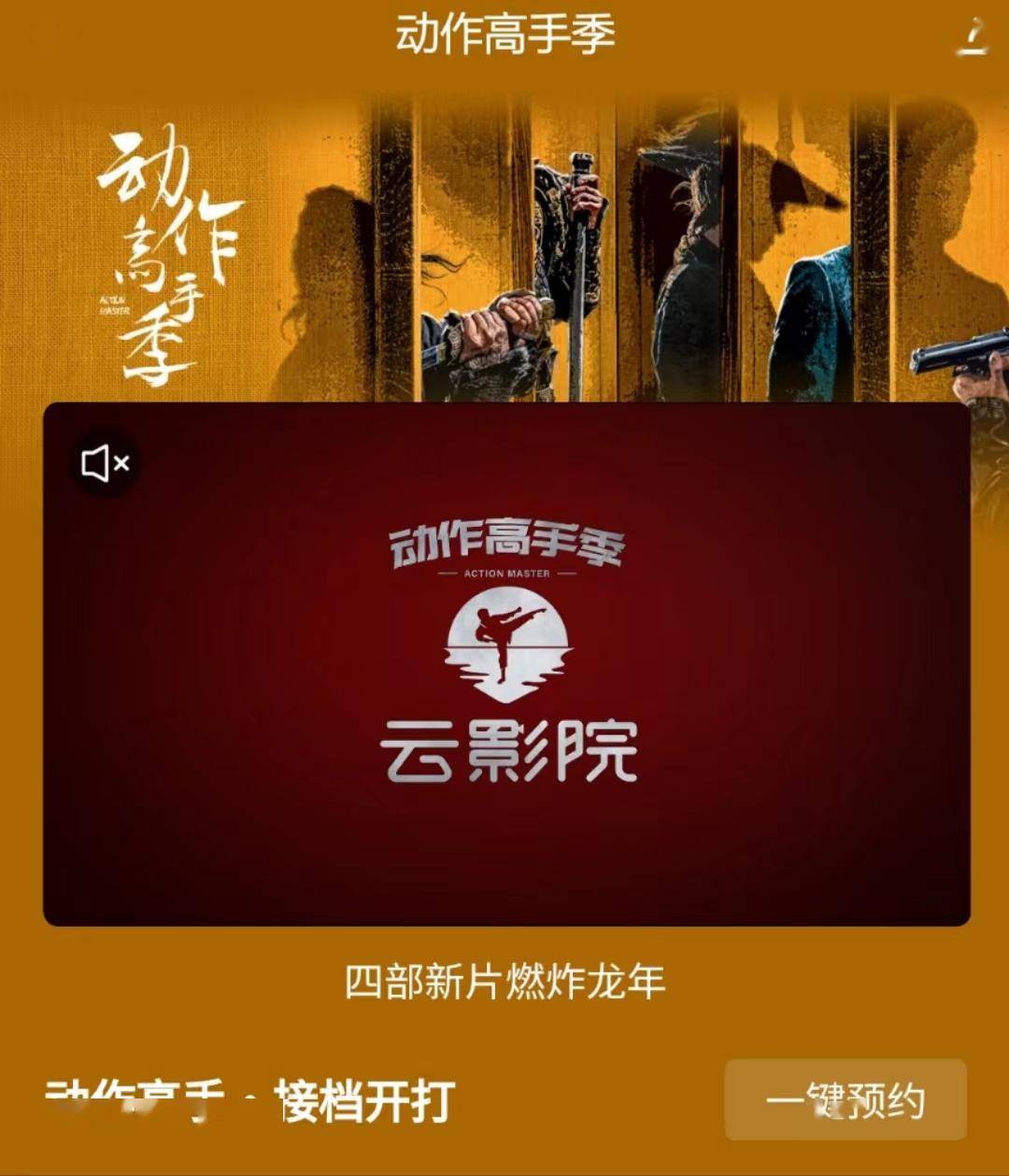 爱奇艺云影院“动作高手季”,就是响应这批受众的呼吁而出。为了满足观众的审美诉求,“动作高手季”推出了《挡马夺刀》《目中无人2》《缉恶》《陌路狂刀》四部风格各异、题材不同的武侠片。影片的主演,皆是国内颇具代表性的动作明星,曾凭借出色的身手和精湛演技,给观众留下深刻印象。