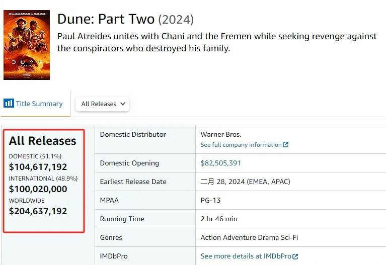 原标题:科幻史诗《沙丘2》北美上映7天票房破1亿美元 成为今年首部北美票房破亿电影