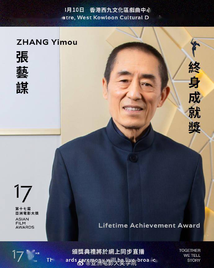 第十七届亚洲电影大奖颁奖典礼将于2024年3月10日举行。届时,张艺谋将出席颁奖典礼并亲自接受奖项。