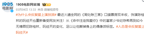 但我们真诚地希望,这次《周处除三害》的成功能多少改善一点两岸文化交流的现状。也期待阮经天重新打开大陆市场后,台湾的优秀青年演员能更有动力北上拍戏,在尝试、协商和磨合过程中,在大陆电影中找到合适的作品和角色。