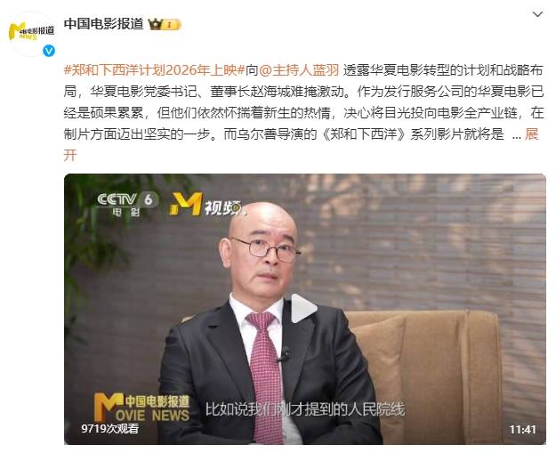 向主持人蓝羽透露华夏电影转型的计划和战略布局,华夏电影党委书记、董事长赵海城难掩激动。作为发行服务公司的华夏电影已经是硕果累累,但他们依然怀揣着新生的热情,决心将目光投向电影全产业链,在制片方面迈出坚实的一步。而乌尔善导演的《郑和下西洋》系列影片就将是华夏转型的重要阵地,赵海城透露《郑和下西洋》今年开拍,他有信心,这部影片将呈现为兼具成熟的视听技术和中华审美风范的精品,好作品永远值得等待。