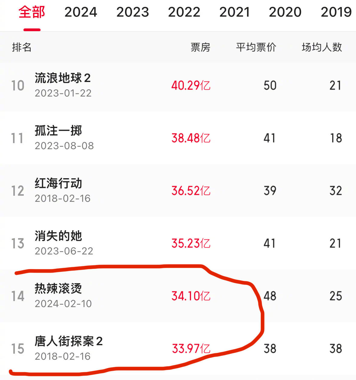 截至目前,影片上映22天累计票房已达34.1亿,超越《唐人街探案2》(33.97亿)晋级中国影史票房总榜第14位。