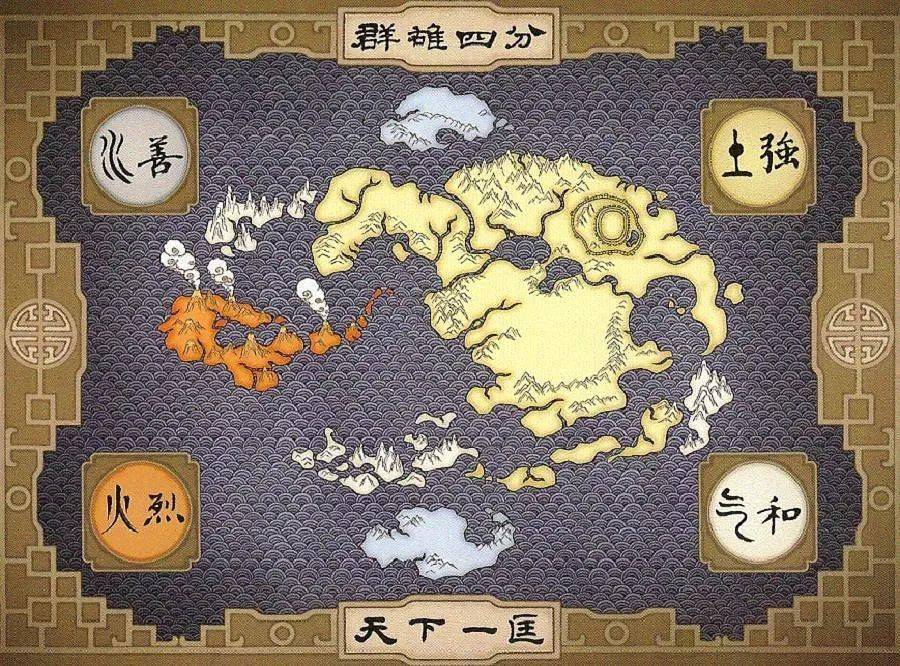 水、火、土、气四种元素分别为四种力量、四种文化,对应四个国家。
