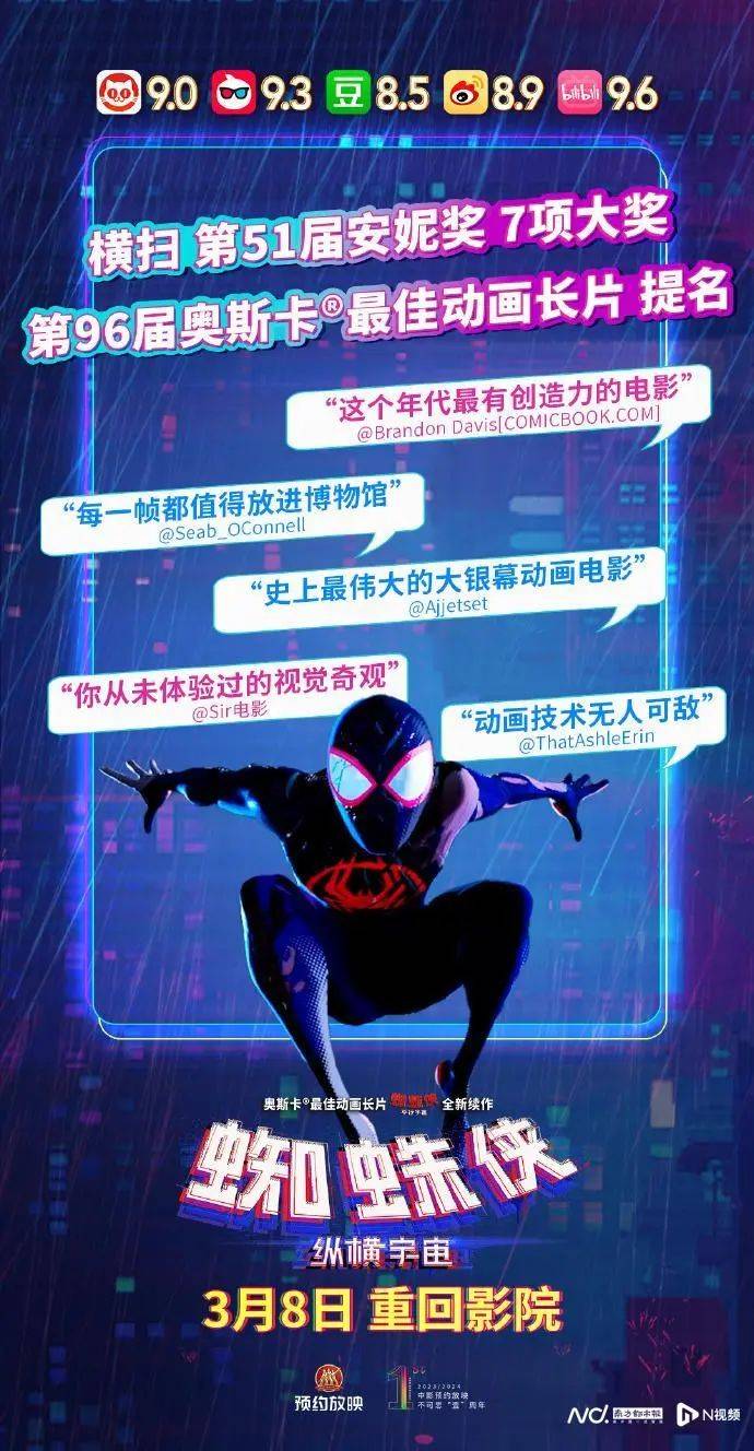 3月4日,荣获第96届奥斯卡最佳动画长片提名的《蜘蛛侠:纵横宇宙》确定将于3月8日起重返内地大银幕。这是本月继《奥本海默》和《沙丘》后,又一部宣布在3月10日奥斯卡颁奖典礼之前重映的好莱坞电影。