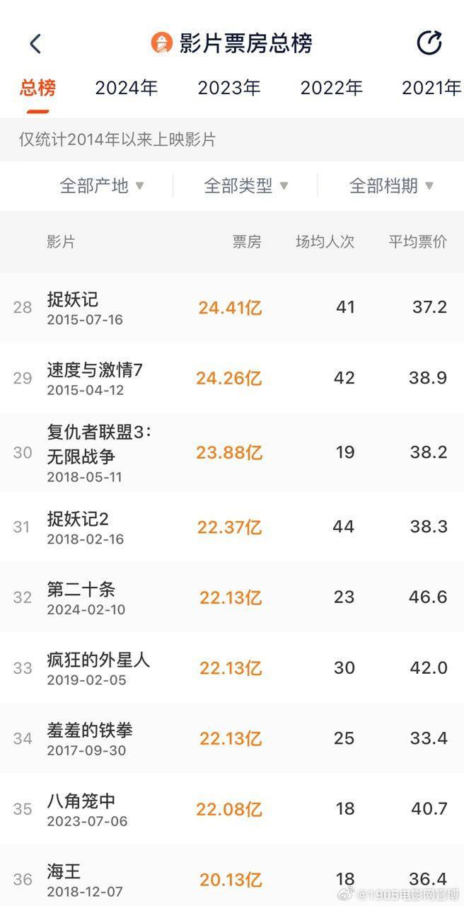 原标题:《第二十条》票房破22亿 进入中国影史票房TOP32