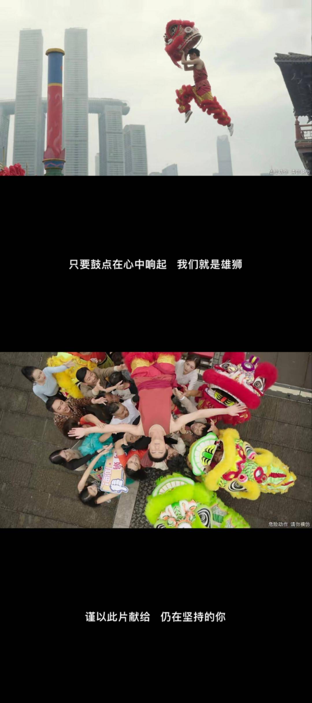 从动画到真人微短剧,影响原动画的“人物造型风格辱华”无从谈起,关注小人物生存与梦想的视角,舞狮的观赏性和文化自信,反而得到了更充分的发挥。这让《超越吧!阿娟》成为了一部艺术表达完整,情绪流畅贯通,甚至还带一抹现实讽刺底色的出色微短剧。