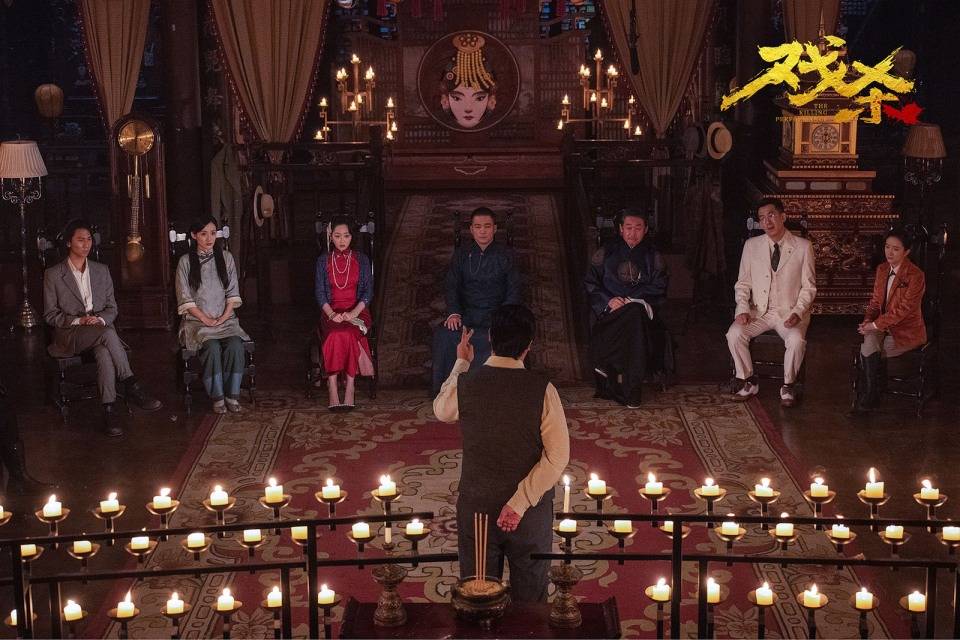《戏杀》是一部非常值得走进影院观看的悬疑烧脑且带点恐怖惊悚氛围的剧情片。影片的最大看点就是贾冰所扮演的满天飞探长与嫌疑人天团之间的各种博弈。作为大侦探,满天飞不仅脑子好使,还有一张特别能忽悠的嘴,堪称地表最强的嘴炮高手。而他的那双眼睛,也极具洞悉每个嫌疑人疑点的能力,眼神所到之处,都能让嫌疑人胆战心惊。在满探长高能智商和最强嘴炮以及辨别真伪慧眼的多重加持下,嫌疑人天团也节节败退,颓势尽显。不过,嫌疑人天团也不是吃素的,他们也都是斗智高手,个个有理有据,与满探长杀得难分彼此。满探长时而舌战群儒,时而又被嫌疑人们攻讦质疑,双方有攻有守,真真假假,让人犹如雾里看花。不到最后时刻,真相很难揭晓。而从头至尾的全程高能斗智斗勇斗心计斗心理,加上后半程的连环反转,不断入局出局,神探与嫌疑人天团之间的攻防结合、反复博弈,亦成了影片的最大看点。稍有不注意,就极有可能跟不上剧情的节奏,看不懂反转的因由,难明白命案的动机。