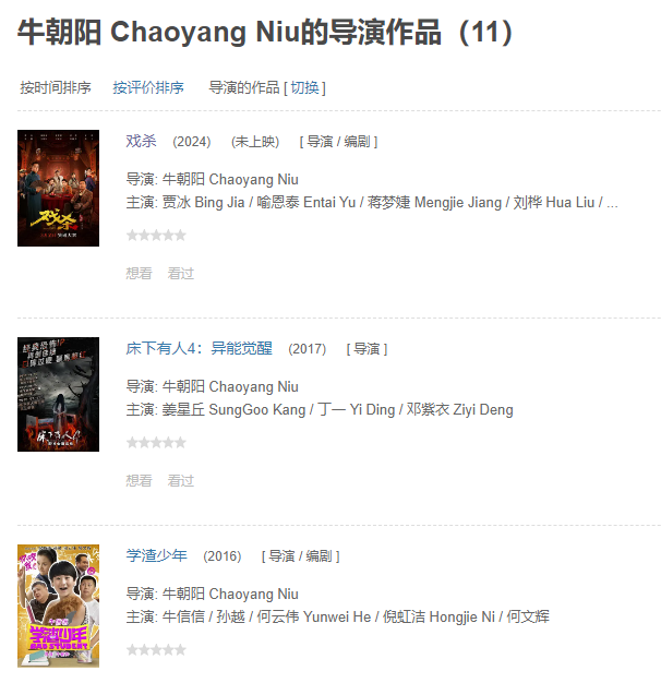 再考虑到牛导那些豆瓣评分“二二三三四四”的悬疑、恐怖、喜剧片创作履历……说实在的,这部《戏杀》大概率就不必去影院浪费时间金钱了。