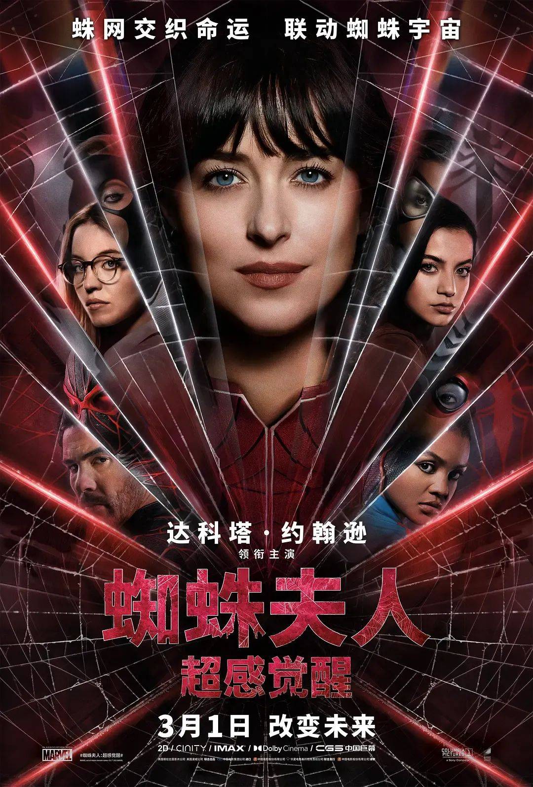 由S·J·克拉克森(《连带伤害》《剖析丑闻》)执导,达科塔·约翰逊、西德妮·斯威尼主演的索尼“蜘蛛侠宇宙”新作《蜘蛛夫人:超感觉醒》将于3月1日(本周五)在中国内地上映,这也将是龙年引进的首部好莱坞超英大片。
