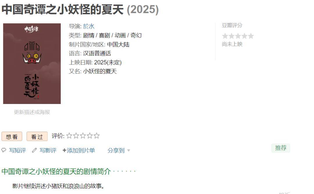 还有去年年初大火的《中国奇谭》,8部短片中已有三部成功地完成了院线电影的立项,分别是《小妖怪的夏天》《林林》和《乡村巴士带走了王孩儿和神仙》。考虑到动画电影制作周期普遍较长,这三部作品估计也要到2025年才能有个盼头。