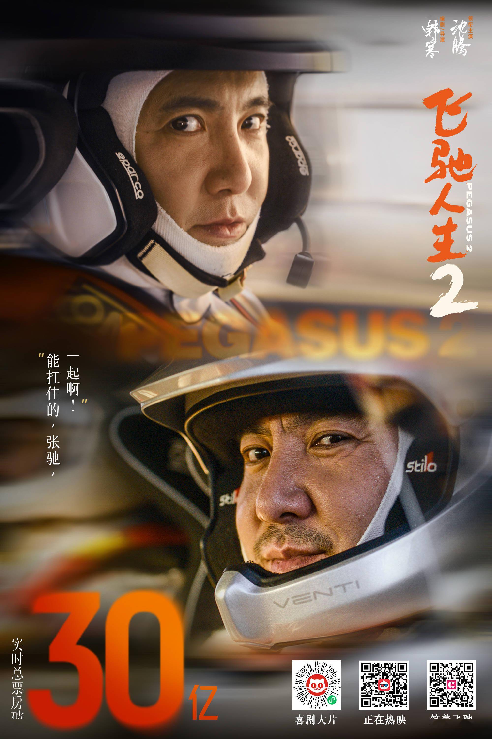 《飞驰人生2》也成为第四部主演票房破30亿的电影,其余三部为。 值得一提的是,这一票房成绩也是导演,演员、、的新里程碑——个人票房最高的作品,并且这一成绩还将持续提高。