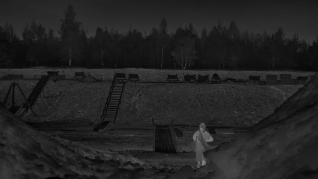 又比如格雷泽在片中,偶尔插入的两段完全超写实拍法的热成像段落,以及某些尖利到有未来感的合成器音效——导演其实没有离开《皮囊之下》恐怖片的本行,只不过这次他瞄准的“恐惧对象”,是扭曲、分裂、令人恶心的历史现场,和仍萦绕在世界之中,纳粹邪恶遗产的幽灵感、“鬼气”。