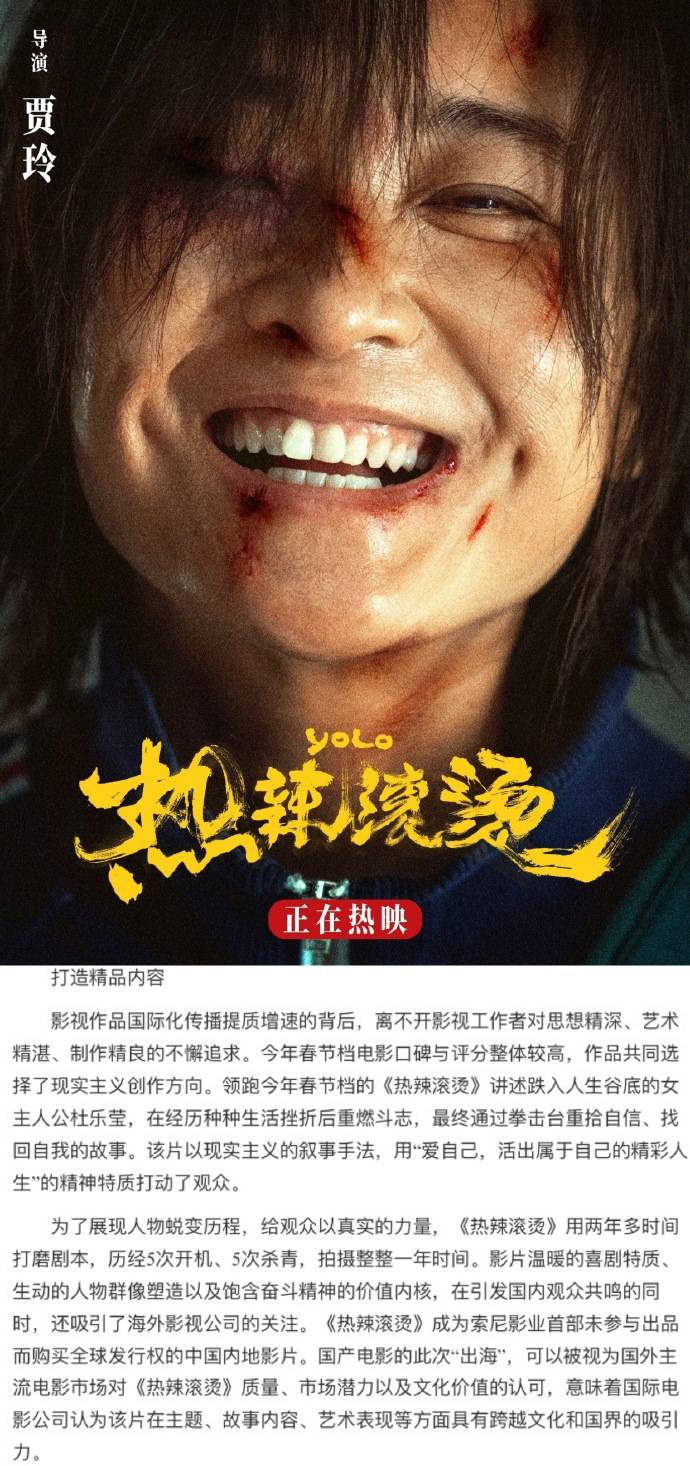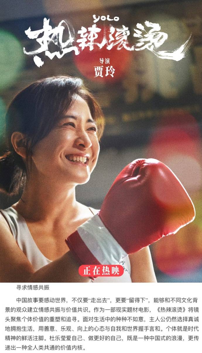 搜狐娱乐讯 近日,人民日报刊发了电影《热辣滚烫》的影评。电影《热辣滚烫》正在火热上映中,影片讲述杜乐莹在经历种种生活挫折后重燃斗志,最终通过拳击台重拾自信、找回自我的故事。人民日报评价该片“以现实主义的叙事手法,用“爱自己,活出属于自己的精彩人生”的精神特质打动了观众。”好莱坞索尼影业目前已购买本片全球发行权,电影《热辣滚烫》即将登上全球舞台,面向更多观众。