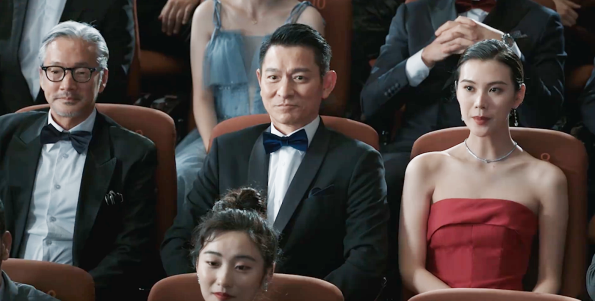 影片一开始,梁家辉、王晶、林熙蕾客串,刘德华在片中调侃成龙,笑点老套,但胜在气氛轻松,观众席还是能零星笑出几声的。
