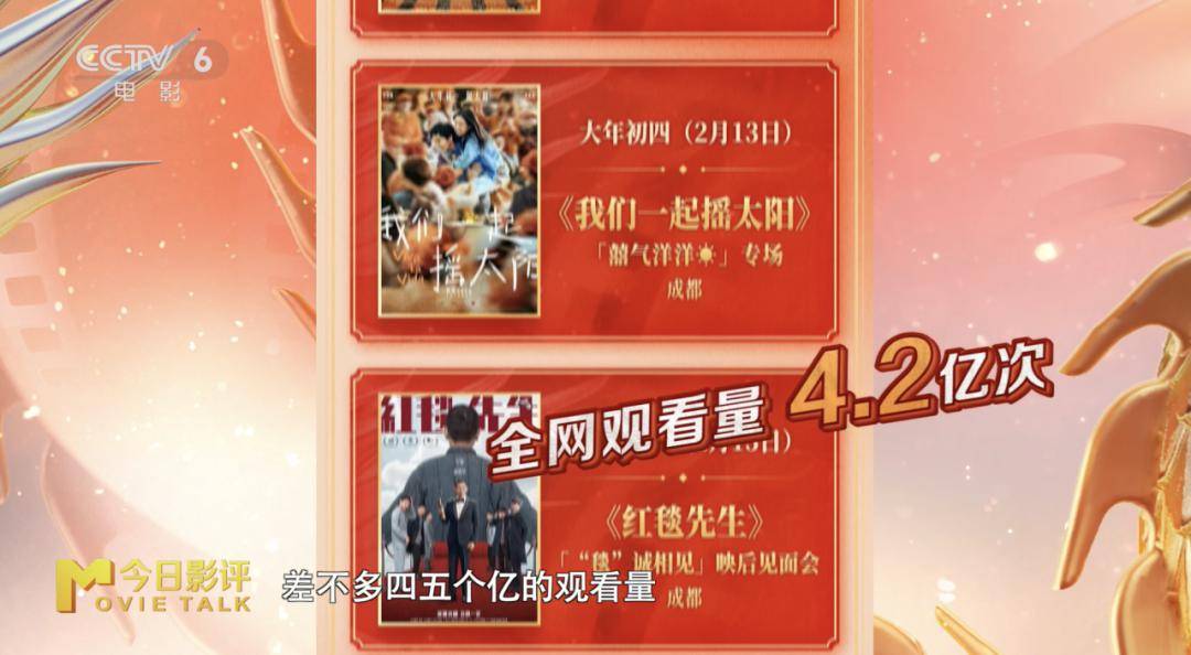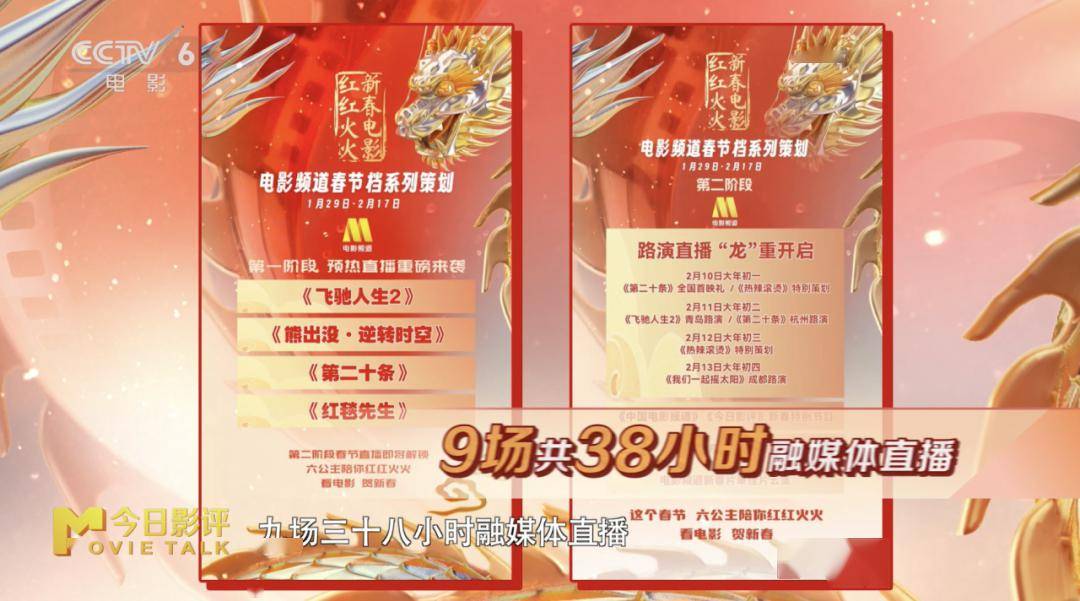第二,电影频道坚持以观众为中心,将路演纪实与口碑传播紧密结合。连续四天的“路演日志”系列融媒体直播聚焦春节档影片口碑发酵,特别策划“全国38城百名观众测评”“实时口碑墙”“主创读评论”等板块,引发全国观众一致共鸣。