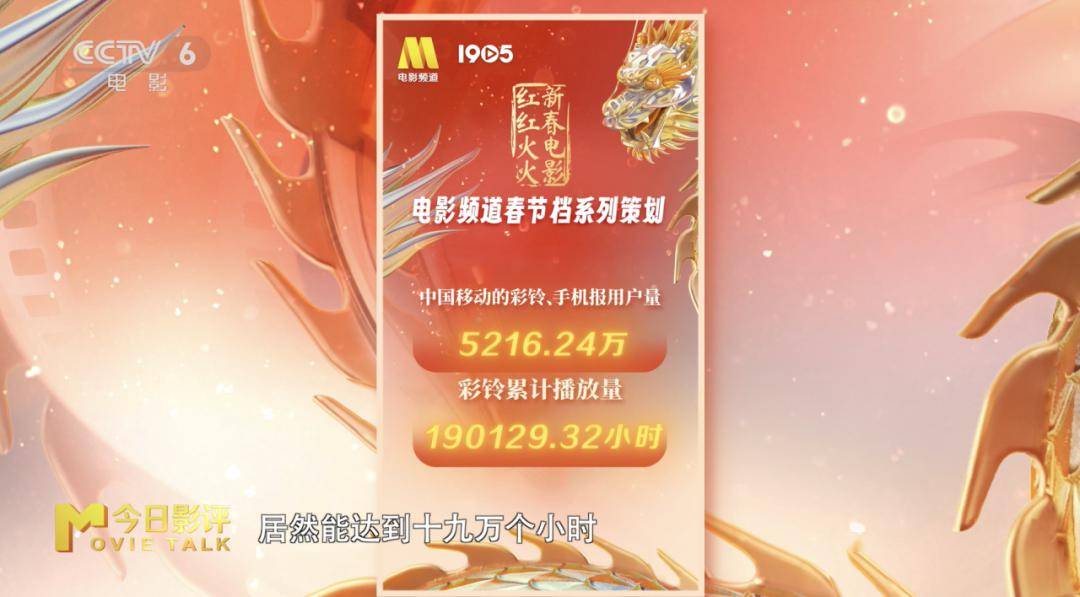 除此之外,电影频道积极探索新的传播渠道,运用中国移动咪咕视频彩铃、手机报等大众化通信网传播方式,累计触达用户5216.24万人,电影宣传视频彩铃累计播放时长长达190129.32小时。