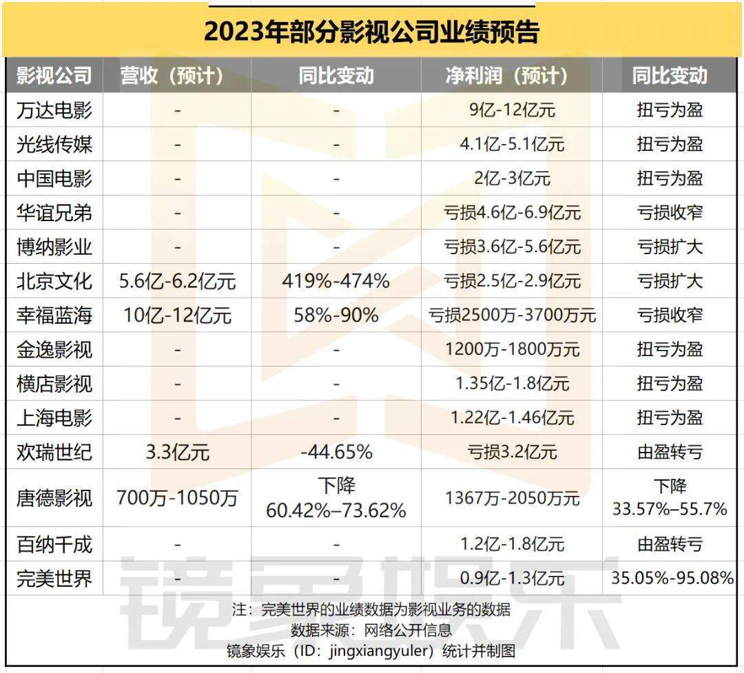 近日,影视公司陆续发布2023年度业绩预告。
