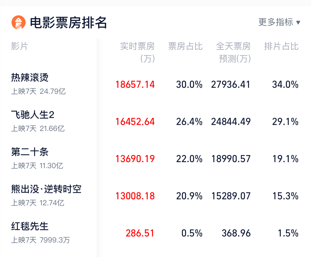 目前排在榜首的《热辣滚烫》已经有25亿票房。