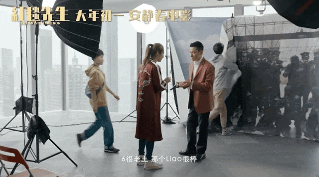 电影中有一场戏,刘伟驰拍摄广告短视频,模仿刘德华在《五虎将之决裂》中的耍枪动作,只见他一套行云流水的动作之后,把“666”说成了“Liao Liao Liao”。