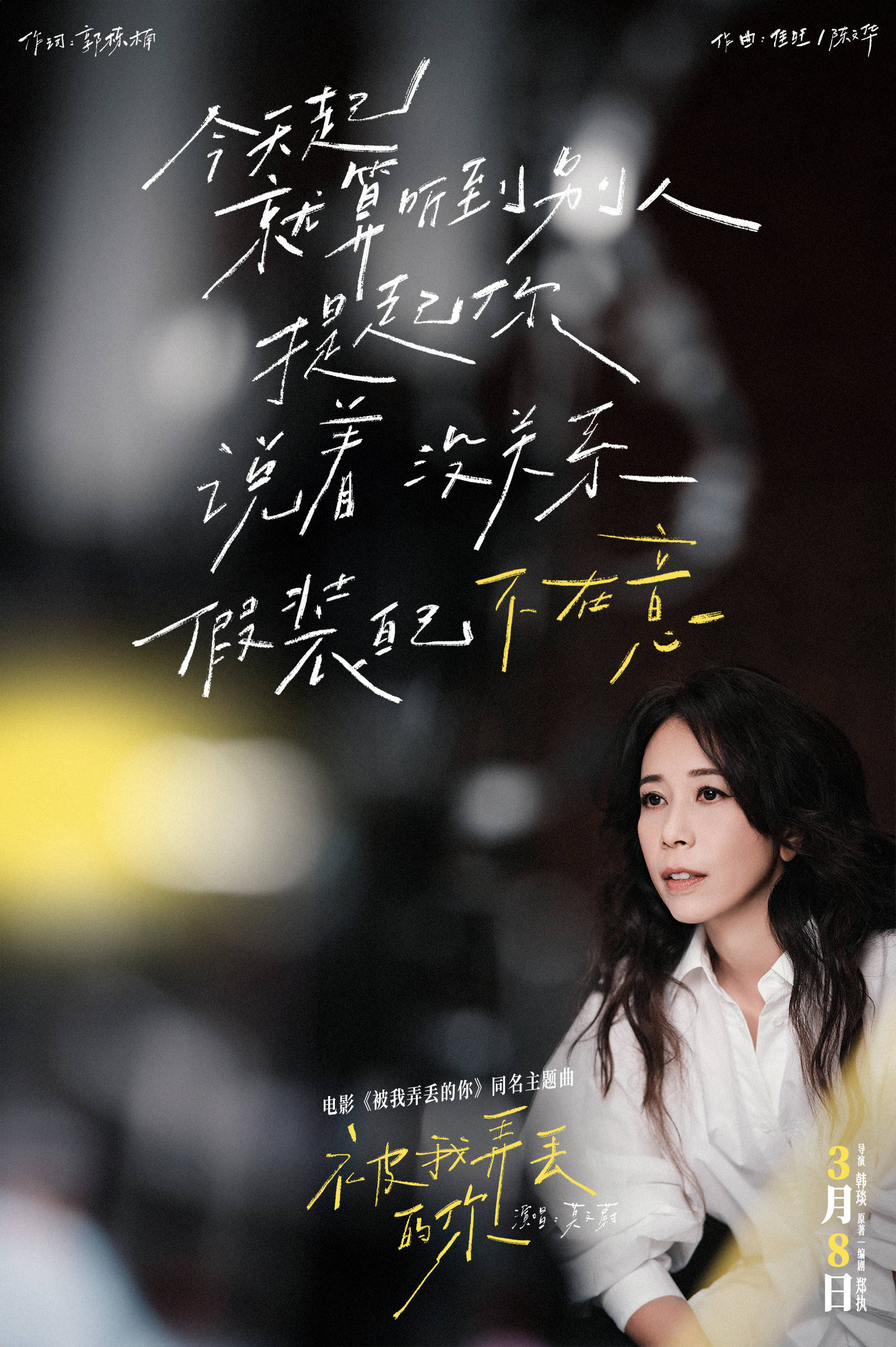 此次《被我弄丢的你》同名主题曲由郭栋楠作词,华语天后莫文蔚深情演唱,主题曲MV由曾获金鸡奖最佳摄影提名的著名摄影师朴松日掌镜,莫文蔚身着白衬衣动情演唱,拍摄过程中几度哽咽不禁潸然泪下,“我弄丢了你,怪我不小心”,紧扣主题的歌词通过莫文蔚走心的演唱让伤感的情绪层层递进,逐渐蔓延。莫文蔚在 MV 中像是两人爱情的悲悯者,在看到白晓宇和王斤斤激烈的争吵归于平静之后默默流下眼泪。