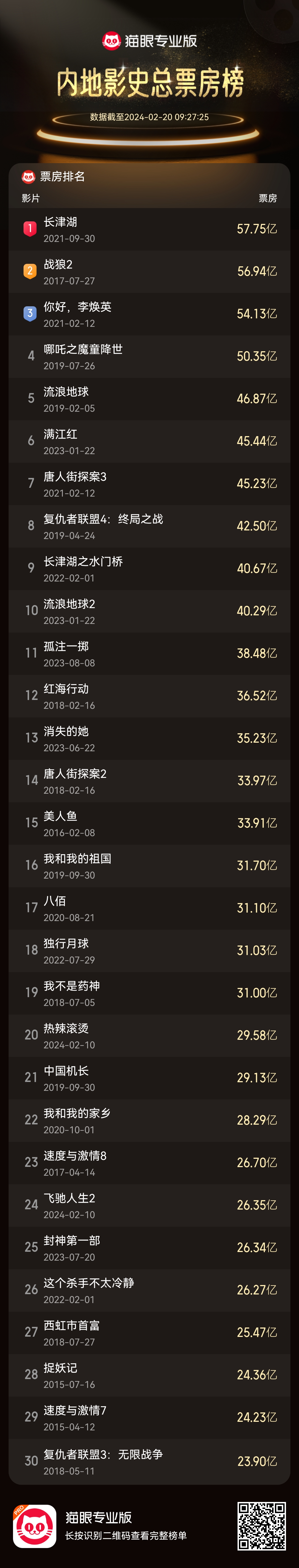 原标题:《热辣滚烫》累计总票房29.58亿 超《中国机长》跻身中国影史票房榜前二十