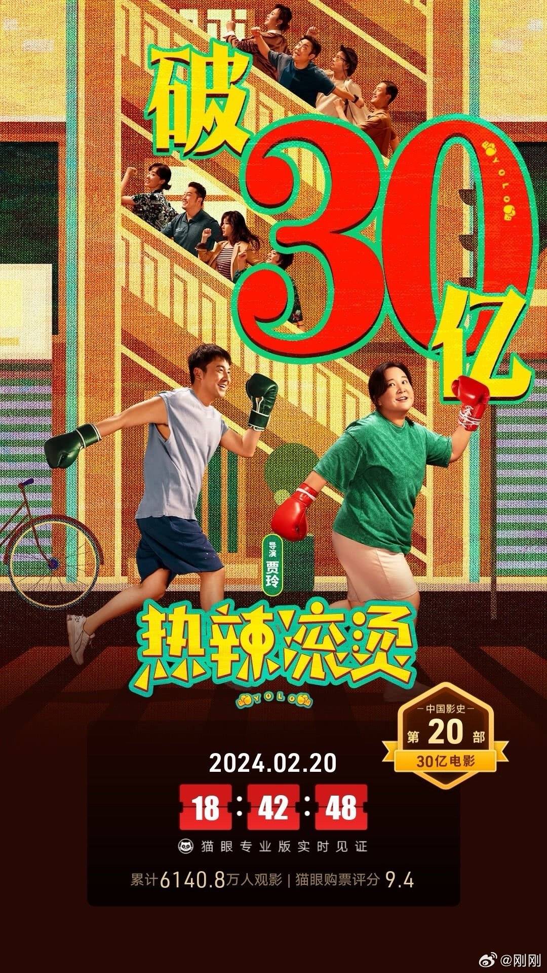 原标题:《热辣滚烫》上映总票房破30亿 暂列中国电影票房榜第20名