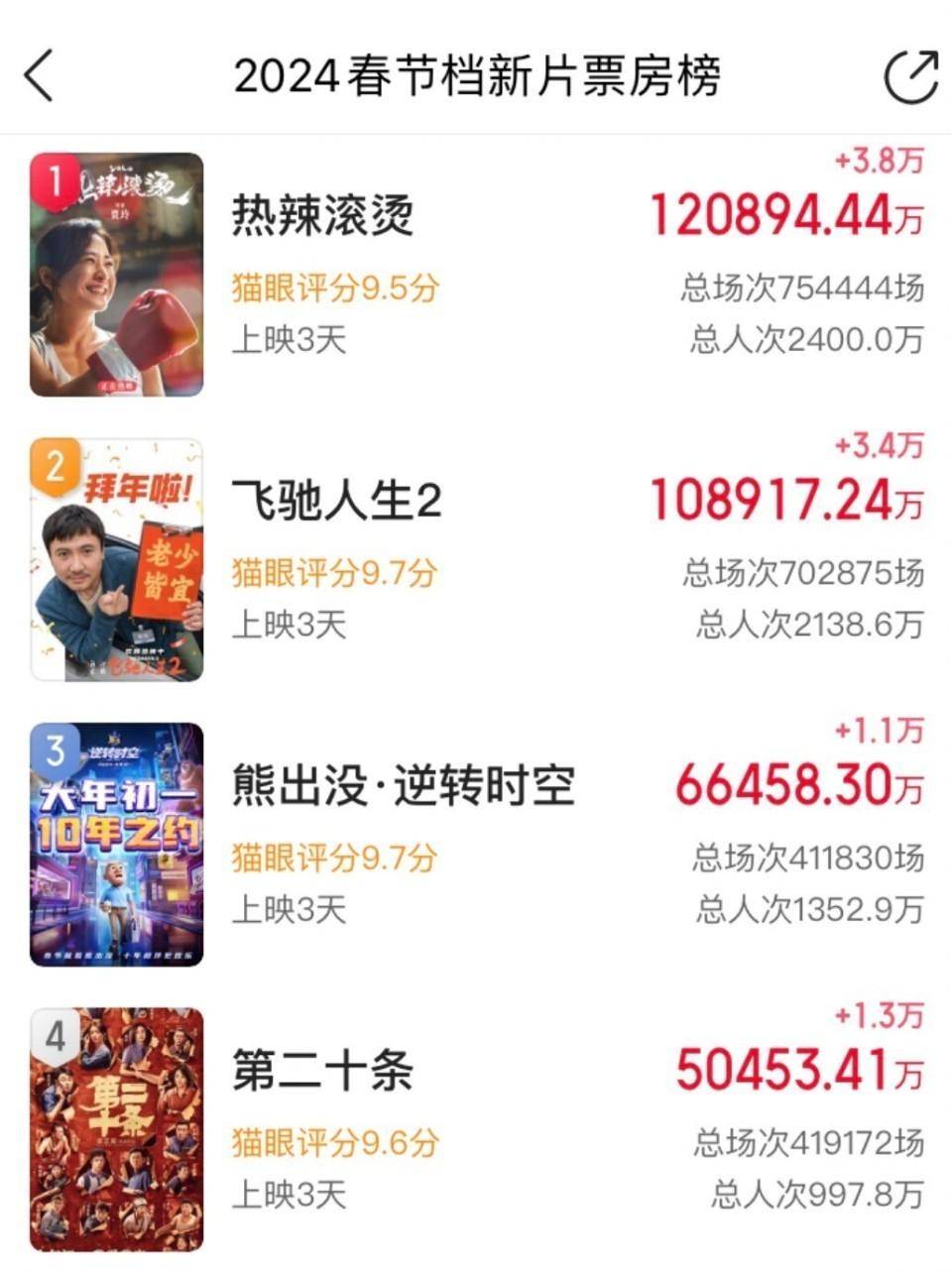 而如此卖力的宣传似乎也为作品带来了一定的关注度,《第二十条》的票房成绩又开始回温了,目前暂时在春节档影片票房排名上排到了第四名的位置。