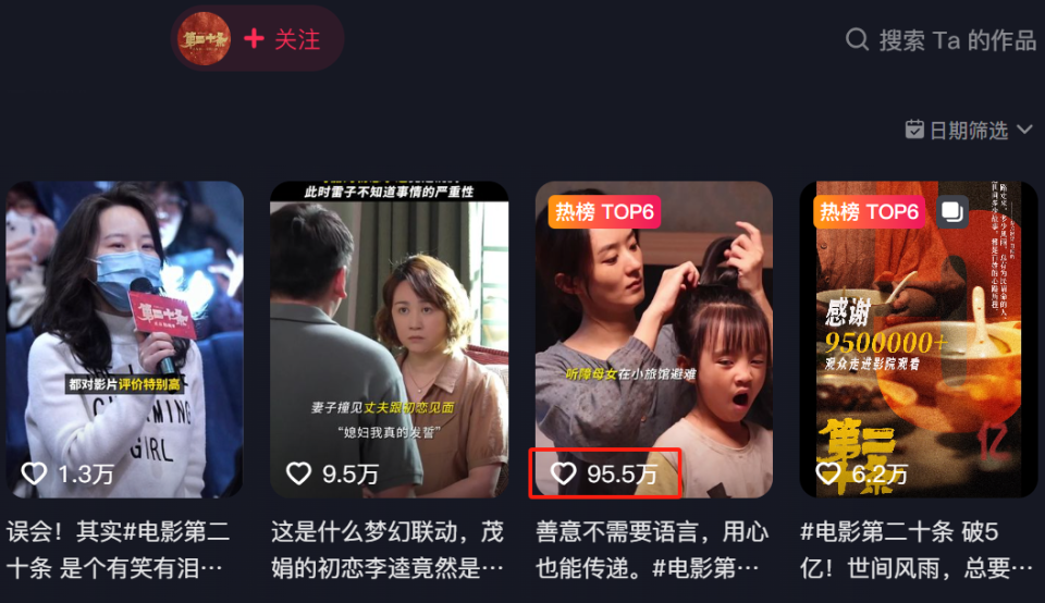 当电影在官方平台的账号放出一段关于赵丽颖的宣传视频后,迅速在平台热度飙升,获得了百万点赞量,比起马丽的宣传视频流量要好很多。