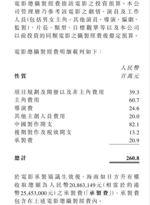 根据欢喜传媒财报公开的数据,《红毯先生》制作成本2.6亿元,其中包括承制费2086万元、给宁浩的导演酬金2460万元(3000万港元)、主角费用6070万元。再加上宣发支出,总成本更高。
